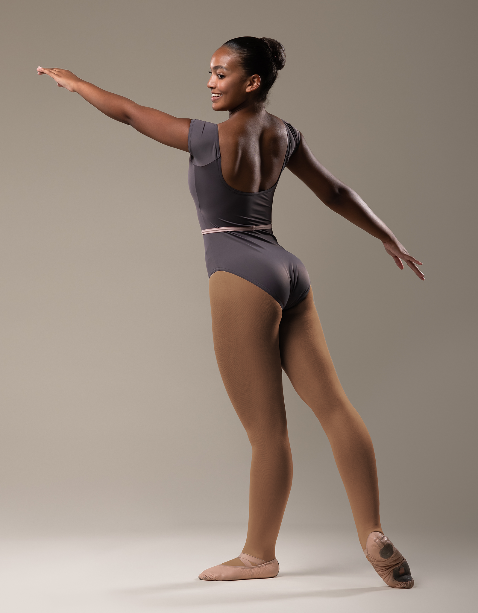 Our commitment to sustainability shines through every stitch. Econyl® fabric, derived from regenerated nylon waste such as discarded fishing nets and ocean plastics, reduces environmental impact and elevates the performance of our dancewear, with unparalleled durability and stretch.